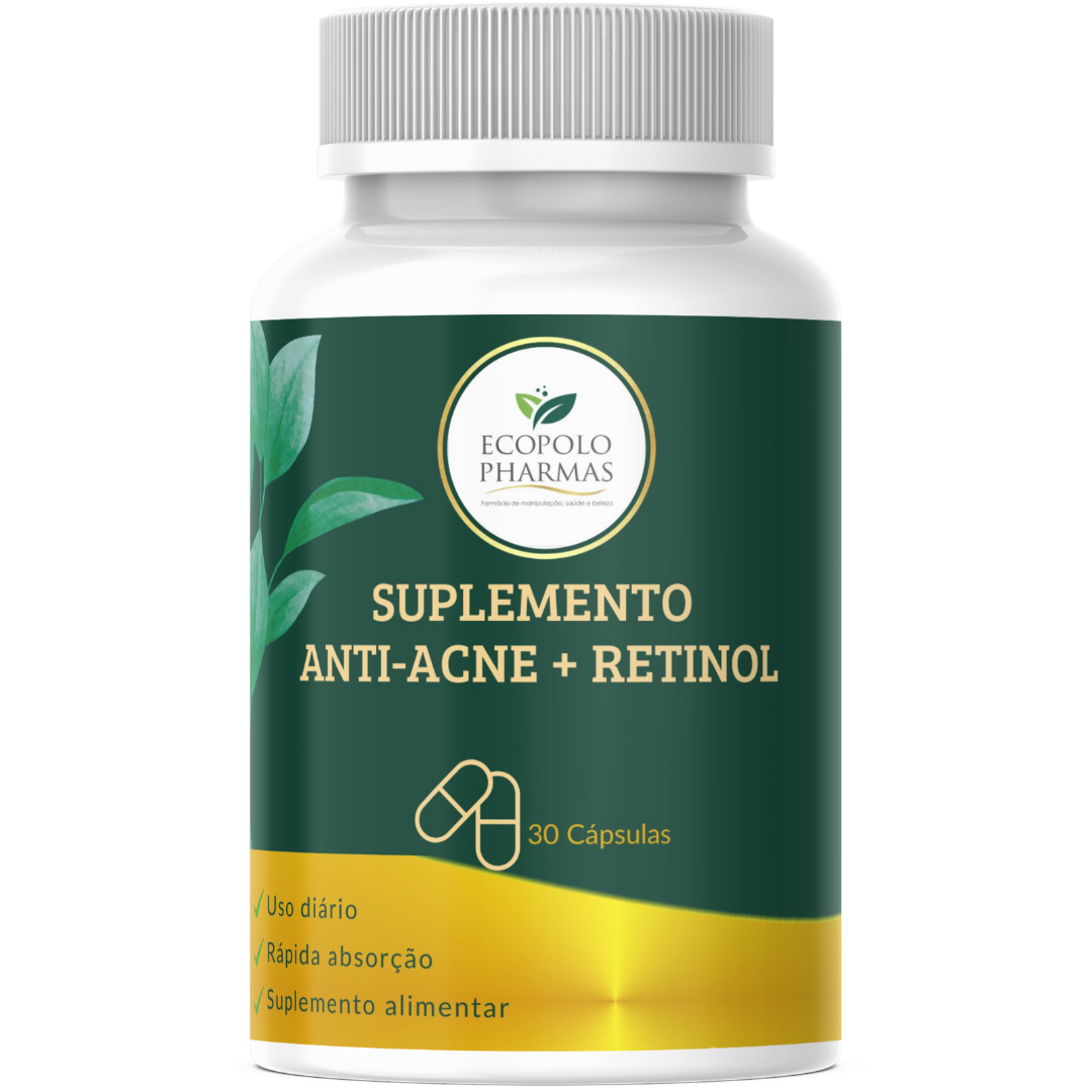 O Suplemento Anti-Acne + Retinol da Ecopolo Pharmas é uma combinação de ingredientes que atuam no combate à acne e no rejuvenescimento da pele. O suplemento contém ativos que ajudam a regular a produção de sebo, reduzir inflamações e prevenir o surgimento de novas lesões acneicas. Já o retinol, uma forma de vitamina A, é conhecido por suas propriedades regeneradoras, estimulando a renovação celular, melhorando a textura da pele e reduzindo cicatrizes e manchas causadas pela acne. Esse suplemento é ideal para quem busca uma pele mais clara, saudável e com menos imperfeições.
